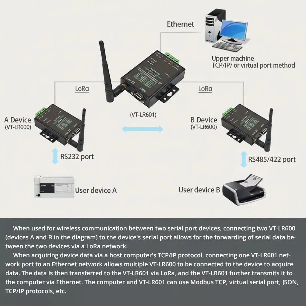 The VT-LR601, based on the VT-LR600, features multi-functional LoRa-to-Ethernet conversion, enabling LoRa to TCP/IP conversion