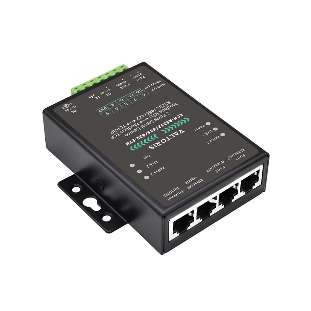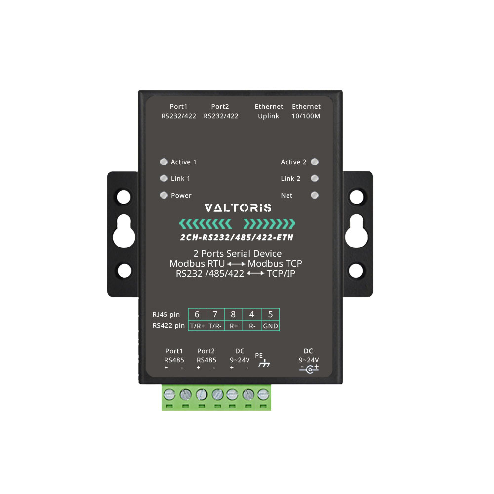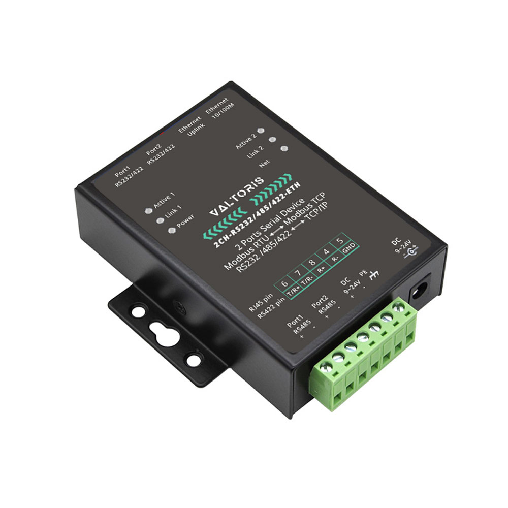 Valtoris Dual-Ethernet Serial Server | RS232/485/422 to Industrial Modbus TCP/IP Gateway